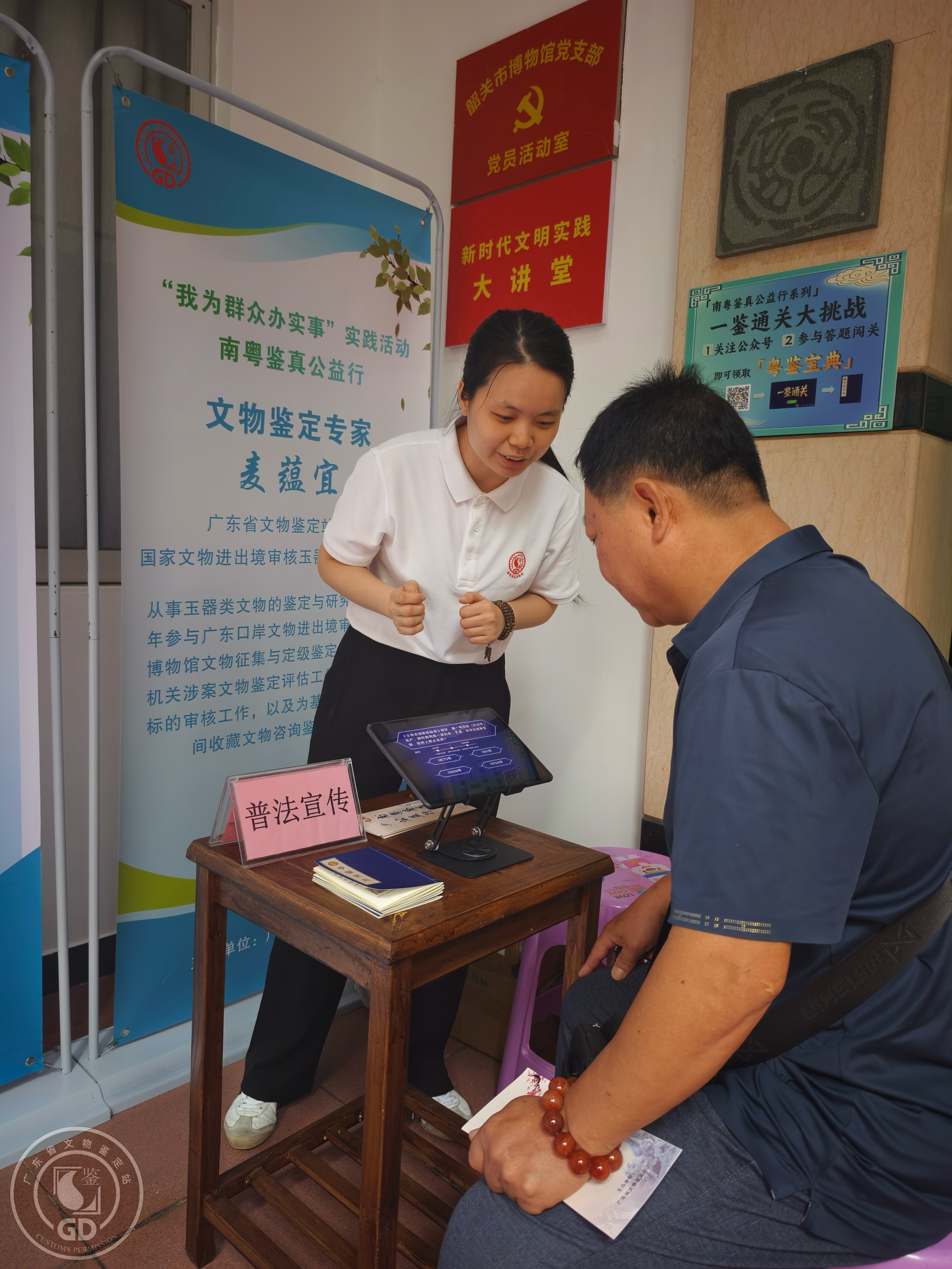 恰逢5·18国际博物馆日活动到来之际,广东省文物鉴定站(下称“鉴定站”)“南粤鉴真公益行”品牌活动走进国际博物馆日广东主会场和市级、区级分会场,并创新推出“一鉴通关大挑战”趣味普法互动和“粤鉴宝典”文创产品,吸引公众广泛参与。